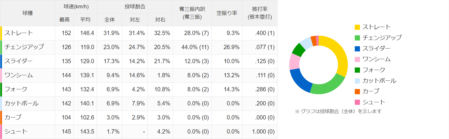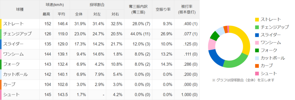 とは言ってもストレートとチェンジアップで投球の全体の半分以上を占めてはいるんですよね。